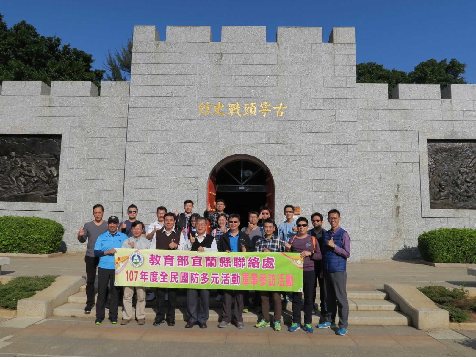 為增進宜蘭縣內全民國防教育知能,了解金門戰地文化,本處於11月29日至30日在金門辦理「107年度全民國防多元活動軍事參訪活動」,參觀翟山坑道、獅山砲陣地、金門八二三戰史館、俞大維先生紀念館等文化景點,並請宜蘭高中王垠校長擔任講座,使參加師長均能收穫滿滿。
