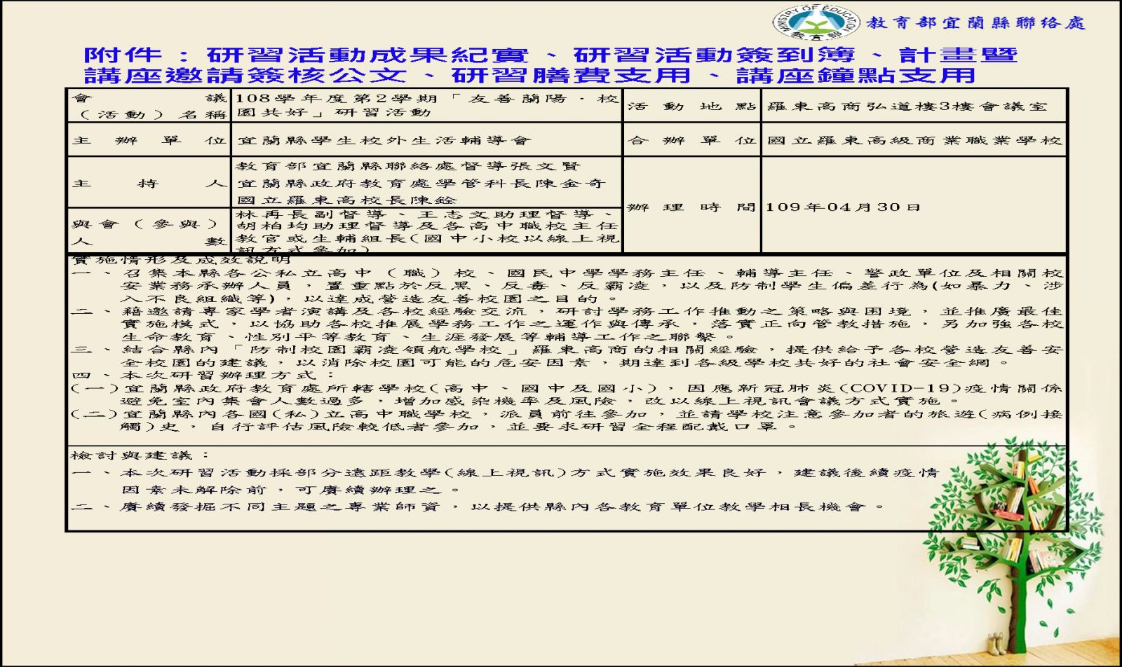 > 1090430「友善蘭陽.校園共好」研習